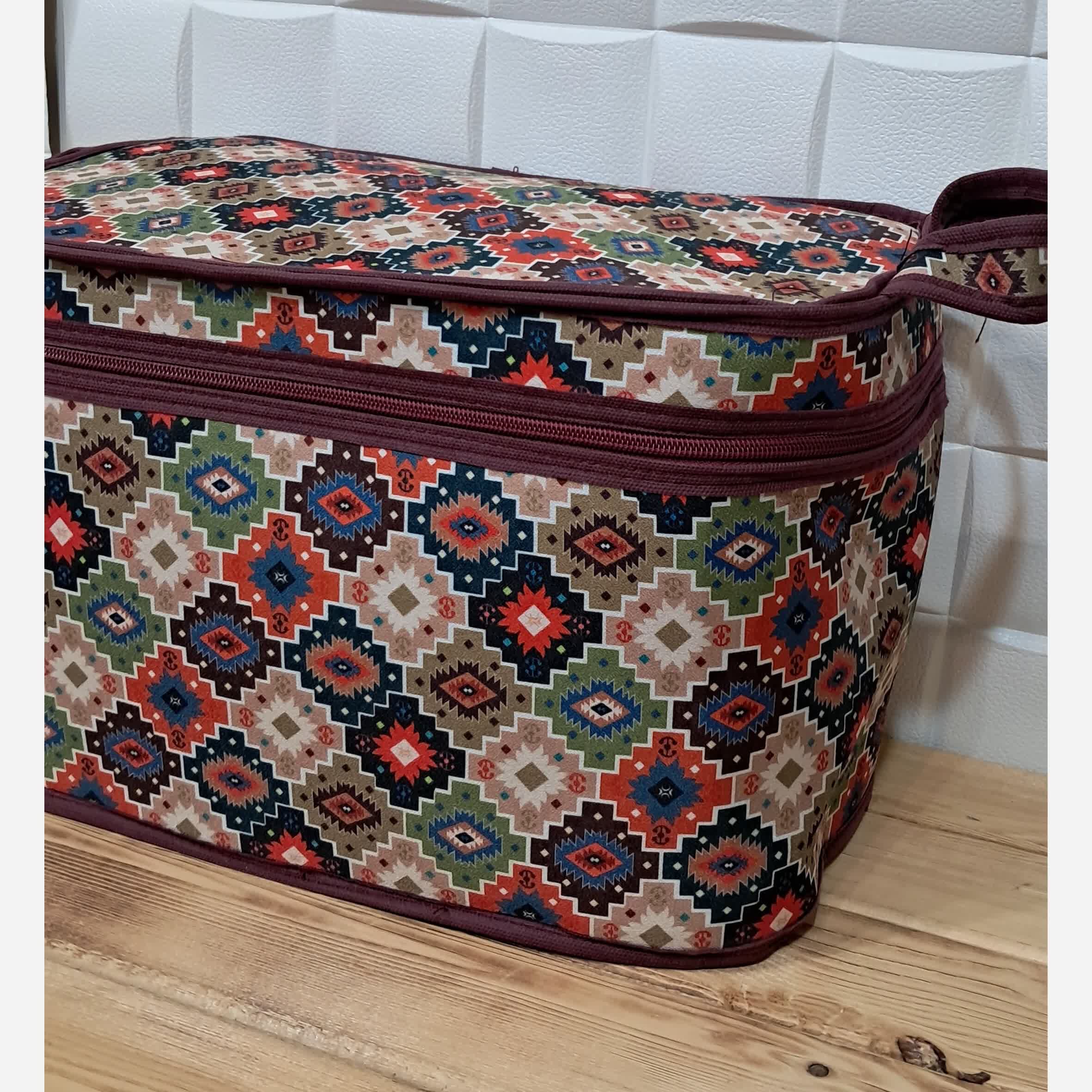 باکس کرپ سایز متوسط جنس کرپ دارای دسته جهت حمل آسان دارای سرزیپ فلزی قیمت تکی 175