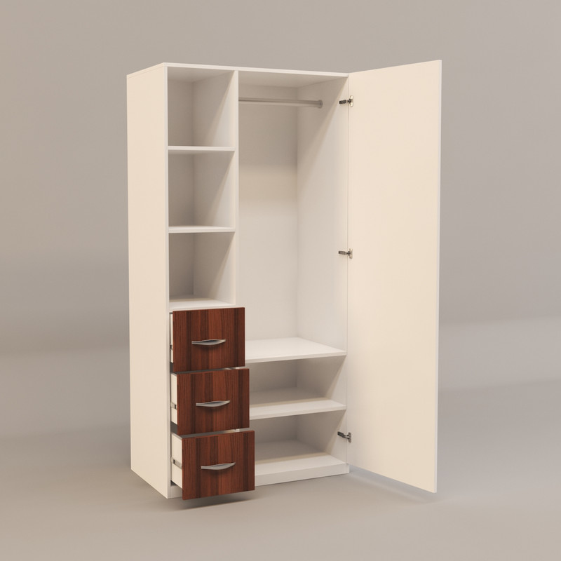 کمد لباس .جنس ملامینه.سطح ضدخش.طراحی ساده و کاربردی.وزن متناسب با ابعاد.قابل استفاده در منازل و اتاق خواب.تحمل وزن متناسب با ابعاد و به صورت استاندارد.در رنگ های متنوع.بسته بندی با لوگو و برند .یک درب و سه کشو.
