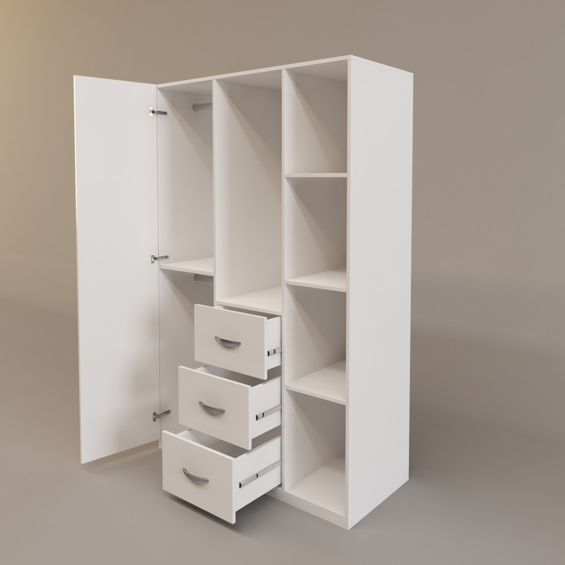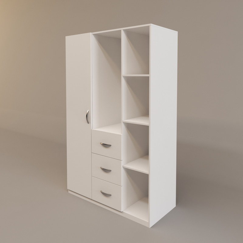 کمد لباس .جنس ملامینه.سطح ضدخش.طراحی ساده و کاربردی.وزن متناسب با ابعاد.مناسب منازل و اتاق خواب.تحمل وزن متناسب با ابعاد و به صورت استاندارد.در رنگ های متنوع.بسته بندی با لوگو و برند .یک درب و سه کشو.