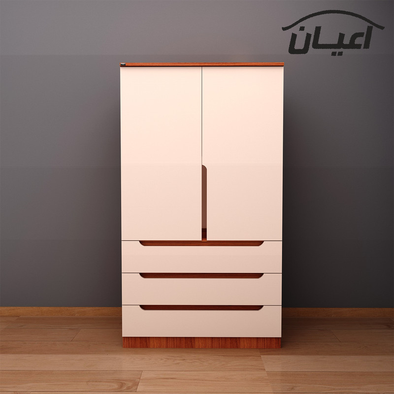 جنس ملامینه. وزن متناسب با ابعاد. نوار پی وی سی. بسته بندی با لوگو و برند اعیان. لولا آرام بند. ریل سه تکه. لولای آرام بند