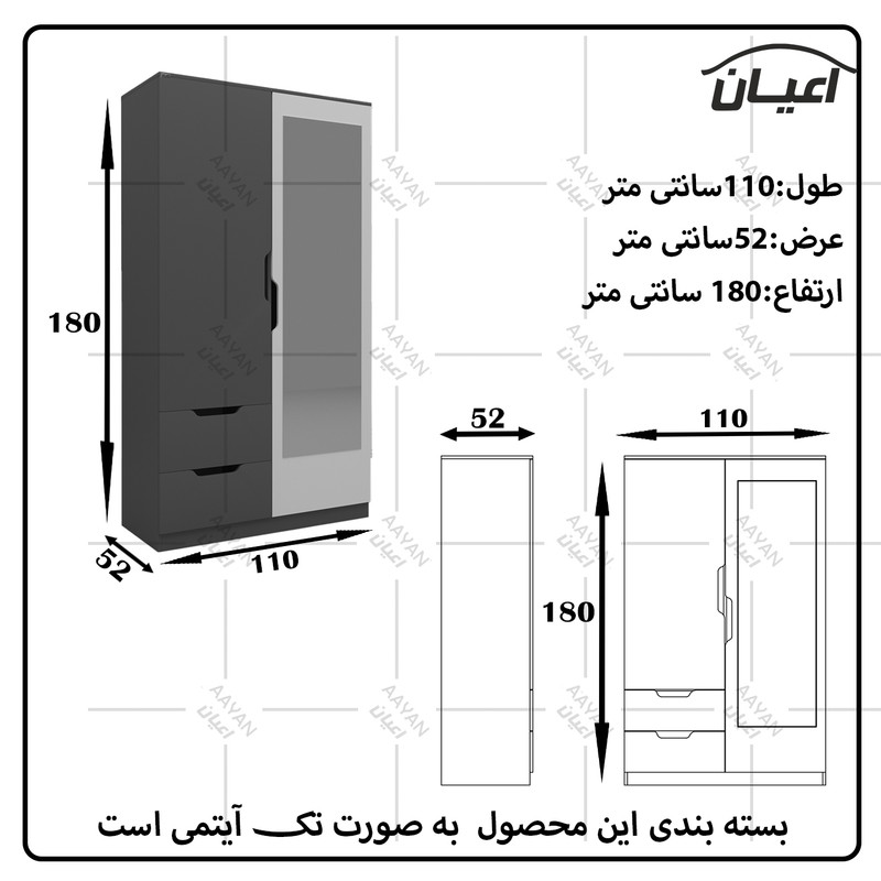 ۱۱۰x۵۲x۱۸۰ سانتیمتر
